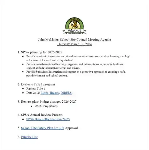 Click here to see our McManus Site Council By Laws